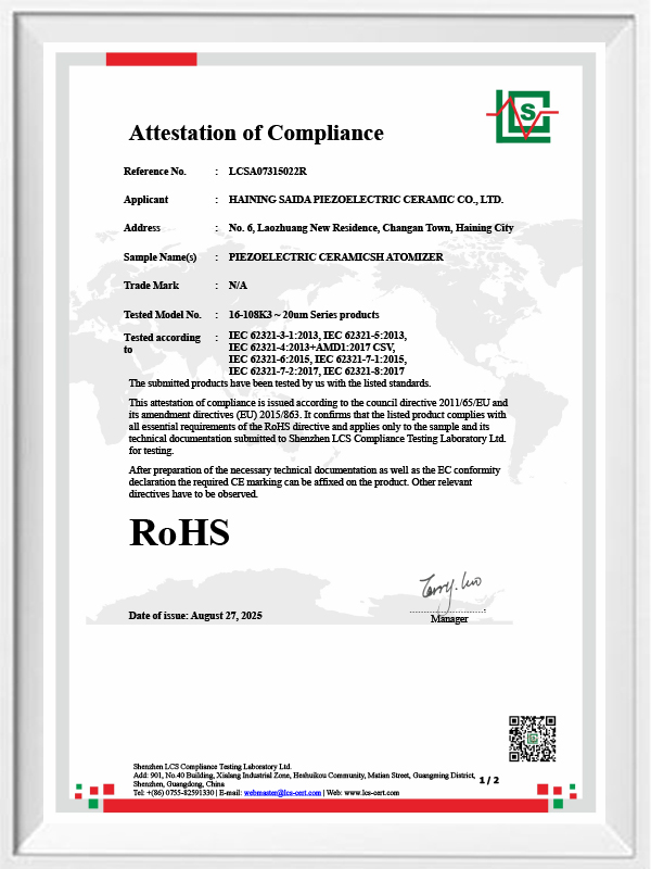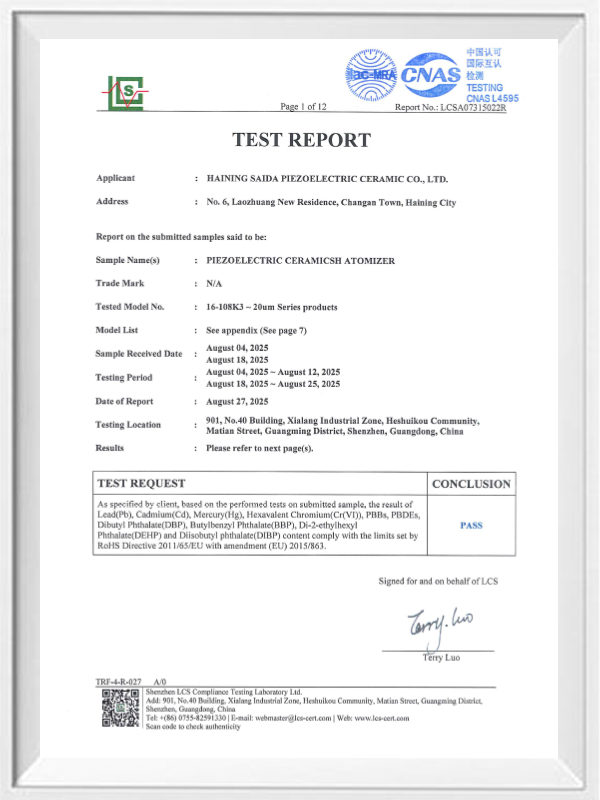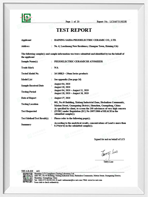 Ceramica piezoelectrică fără plumb este cunoscută sub numele de industria piezoelectrică „perlă”, viitorul va înlocui treptat ceramica piezoelectrică pe bază de plumb în toate aspectele, care are deja aceleași performanțe piezoelectrice și foaie piezoelectrică pe bază de plumb. Este complet non-toxic, inofensiv, sigur și ecologic, nu conține plumb, antimoniu și alte metale grele și alte elemente restrictive Rohs, temperatură Curie ridicată Tc-328 ° C, pierderi electrice foarte scăzute TangentLoss Prin urmare, cipul de atomizare medicală piezoelectrică fără plumb are o mare valoare comercială și o valoare universală, cu adevărat non-toxică și ecologică, ceramica piezoelectrică fără plumb, pe lângă performanța piezoelectrică nepoluantă, proporțională cu ceramica pe bază de plumb, va deveni o ceramică piezoelectrică populară ecologică. După ani de cercetare și dezvoltare, după teste și experimente continue, compania a reușit să realizeze cipul de atomizare medicală fără plumb pentru a obține aceeași cantitate de atomizare ca și cipul de atomizare pe bază de plumb și aceleași cerințe de particule de diametru. Cipul de nebulizator Mesh medical fără plumb, va străluci cu siguranță și va avea o gamă largă de scenarii de utilizare.